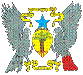- A insígnia é constituída pela figura de um falcão à esquerda e um papagaio à direita, separados por um brasão de forma ovular, cuja abcissa vertical é de dimensão 0,33 vezes superior que a horizontal e no interior do qual se destaca uma palmeira situada ao longo da abcissa vertical.”